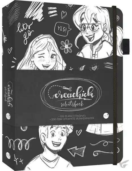 Ga nu zelf aan de slag met tekenen, schetsen en schilderen!Dit CreaChick schetsboek bevat 108 pagina’s kwalitatief, offwhite 200 grams fsc papier waarop je met veel verschillende media kunt werken: met fineliner, potlood, stift en zelfs met aquarelverf. Heb je inspiratie nodig? Kijk dan een van de vele video’s van CreaChick op YouTube! Je krijgt meteen zin om zelf aan de slag te gaan in dit prachtige schetsboek.